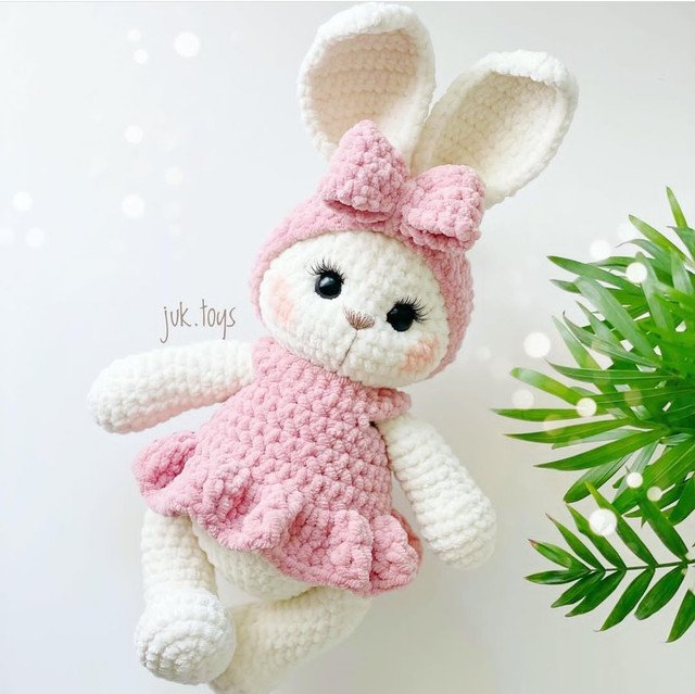 Вы точно влюбитесь в эту очаровашку! Зефирные ушки и огромные глаза под пушистыми ресницами… Изюминка — оригинальное оформление лапок с использованием фантазийной пряжи.