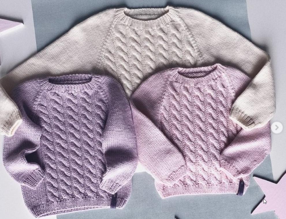 Джемпер вяжется одной деталью сверху вниз до начала пройм, затем отдельными деталями спинка и перед, далее тело по кругу. Рукава вяжутся от пройм.