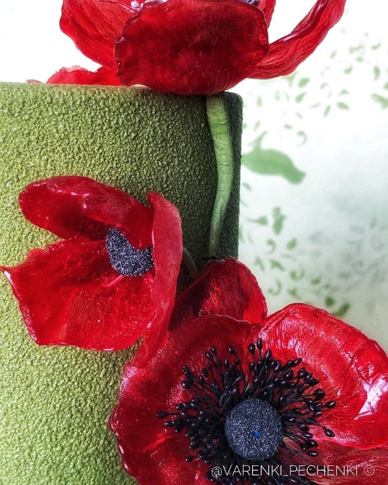Фисташка-Вишня-Шоколад (пористый, мягкий, ароматный шоколадный бисквит; нежный, воздушный фисташковый крем; сливочный фисташковый крем; яркая, кисло-сладкая вишня)