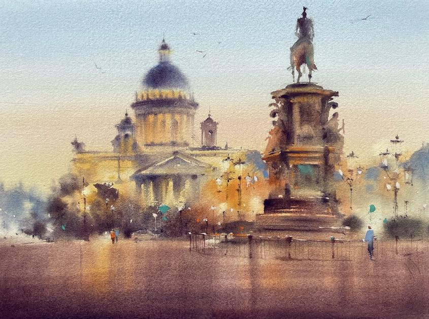 Подбору цветовой палитры: использовать акварель для передачи настроения и глубины;