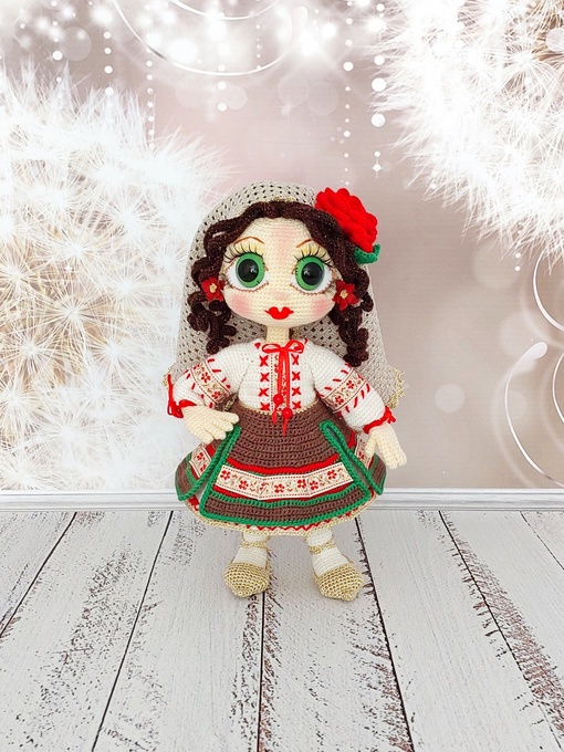Рост 23-26 см. Описание платья для кошечки находится в группе.бесплатно