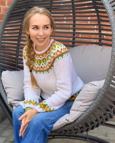 Белая шубка связана из букле Пехорка 200гр-220м в две нити, на 44 размер ушло 6 моточков.