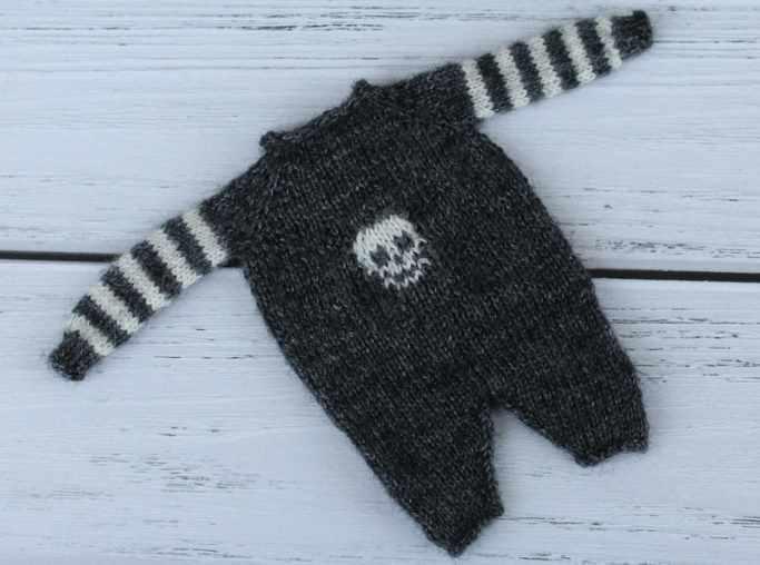 Комплект «Пион» состоит из штанишек на поясе, с кулиской, в которую продернут шнурок, с простеньким узором сеточка, короткого топа с тем же узором, жакетика с V-образным вырезом без застежки с завязками по низу и интересной шапочки на завязках с ушками лисички.