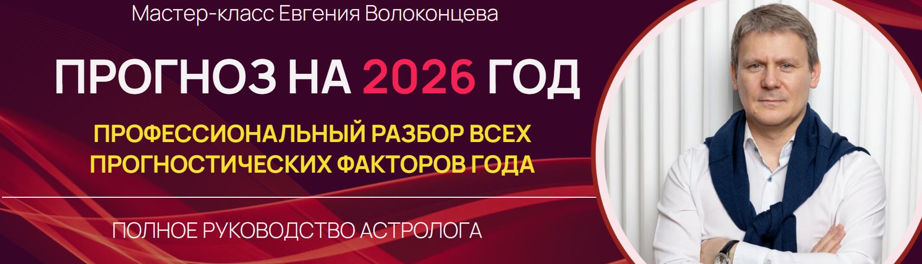 Приглашаем вас принять участие в мастер-классе профессионального астролога с многолетним стажем Евгения Волоконцева, где он в течение 3-х часов поделится с вами профессиональными ключами к трактовке важных астрологических событий 2026 года.