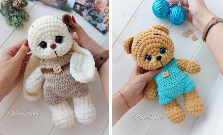 У данного героя внутри вставлен проволочный каркас, с помощью которого можно зафиксировать любое положение пальчиков на лапах. Белая сова вяжется полностью только крючком.