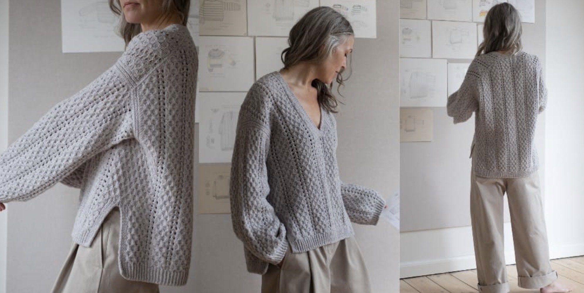 Рукава широкие, что сейчас самая актуальная модель в этом году. Свитер ооочень уютный. Вы точно его полюбите, когда свяжете.