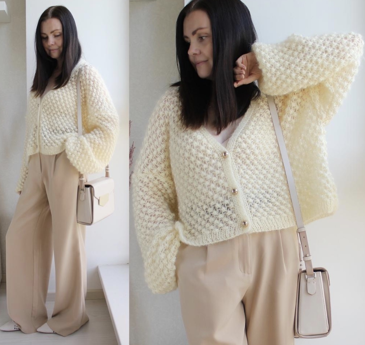 Жакет в молочном цвете связан из Cashmere 16 Fine