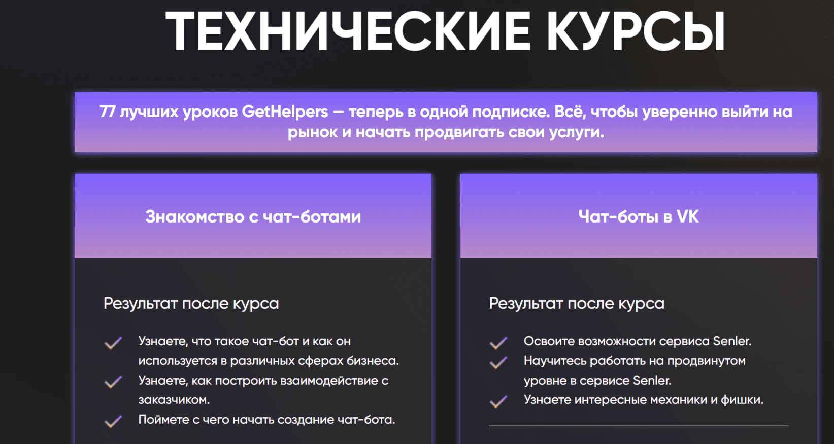 - 👍 Гарантия получения результата. Все обучение добавленное на проекте выкуплено и полностью в наличии