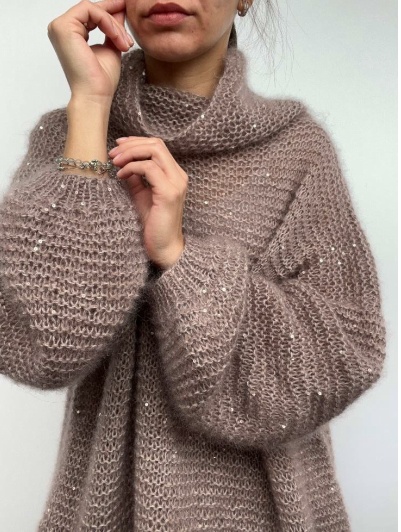 Можно вязать из любой пряжи, без привязки к плотности. Расход 250-350г в зависимости от размера и пряжи.