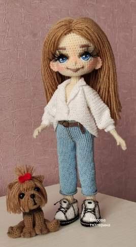 Парик вяжется отдельно и пришивается на игрушку.