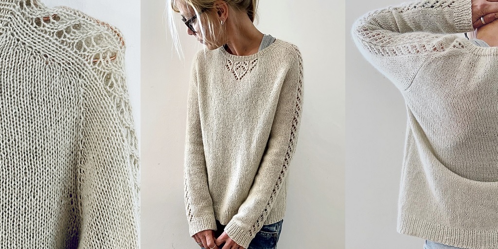 Джемпер вяжется снизу вверх по кругу. Затем формируются проймы, горловина и плечевые скосы. Далее сшиваются плечи, обрабатывается горловина и вяжутся рукава от пройм вниз.