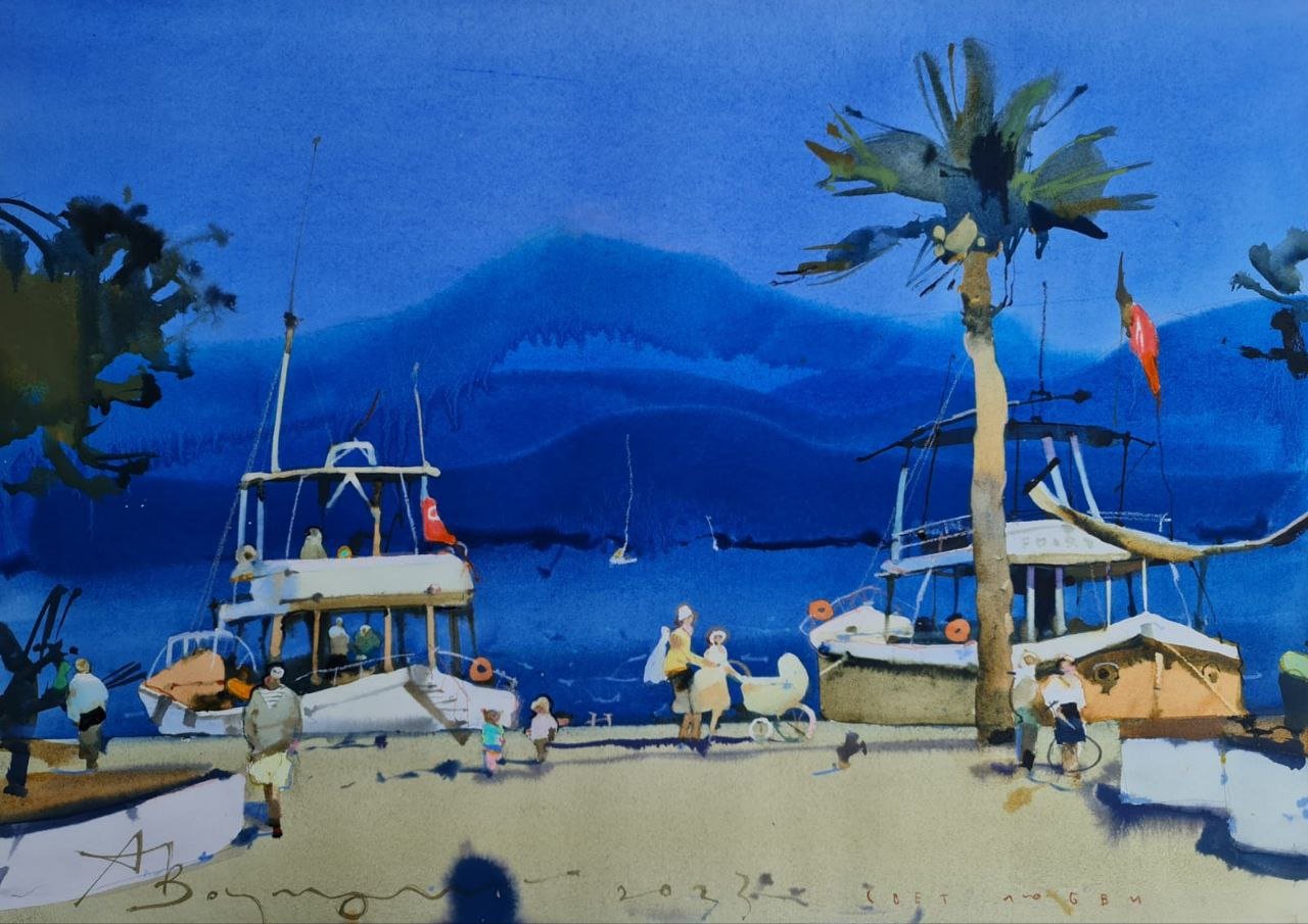 Работаем с горизонтальной композицией. Разбираем как нарисовать вид издалека. Как обобщать объекты и не закопаться в деталях. Объединяем тенями.