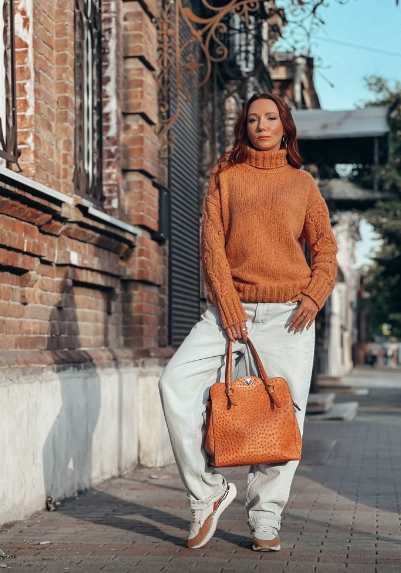 вяжется сверху вниз, имеет лёгкий А силуэт,