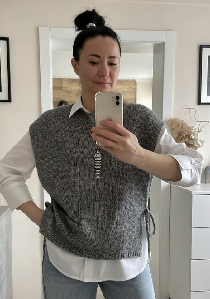 Или любая пряжа схожего метража под рекомендуемый размер спиц 5,5мм при условии попадания в заданную плотность
