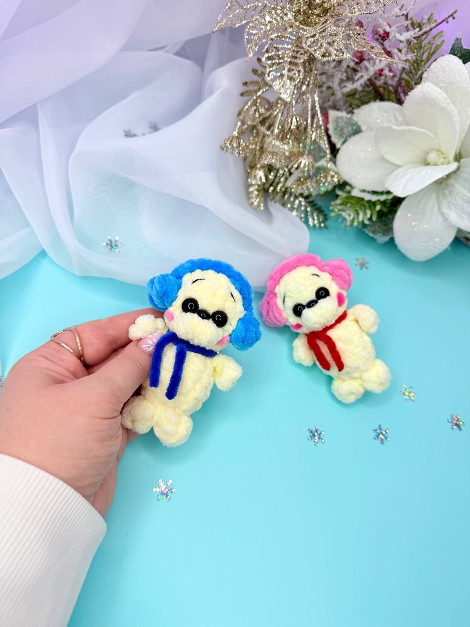 два варианта крепления ножек, на суставах и ввязаные