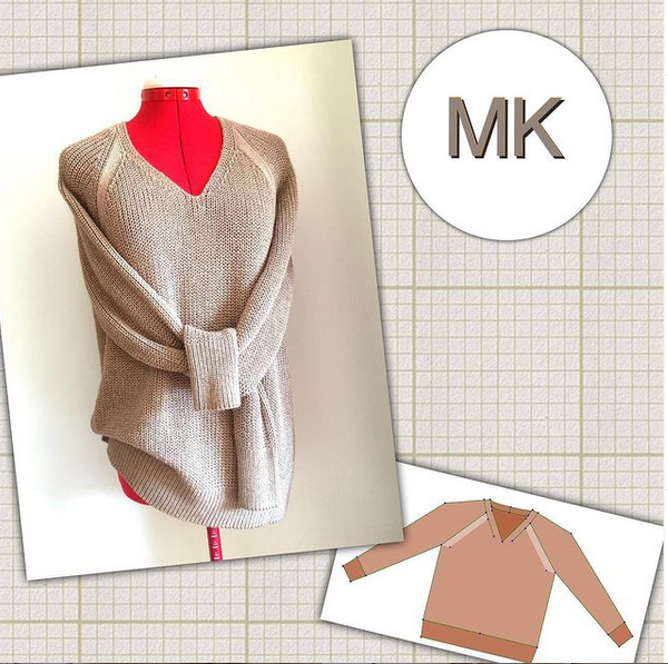 Джемпер связан в классической технике сшивного вязания.