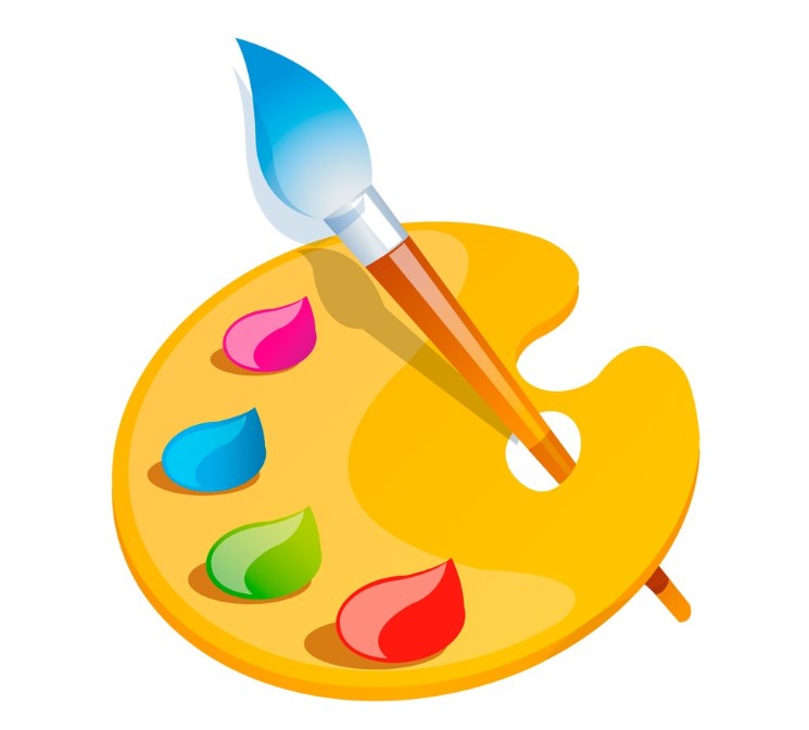 — белая и бежевая гуашь, палитра;