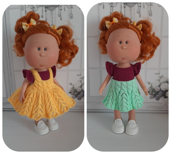 Малыши, связанные по даному МК из предложенных материалов, вышли ростом около 21 см (без шапочки) . Игрушки бескаркасные, стоят с опорой. Все детали ввязаны в процессе вязания. Одежда снимается.