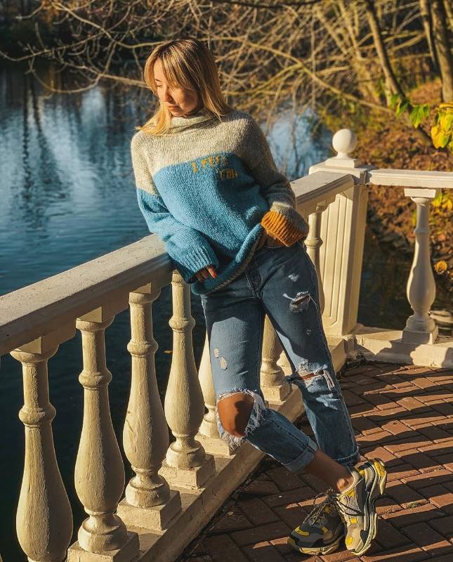 The model on the picture is 169 cm tall and wears a size 2.