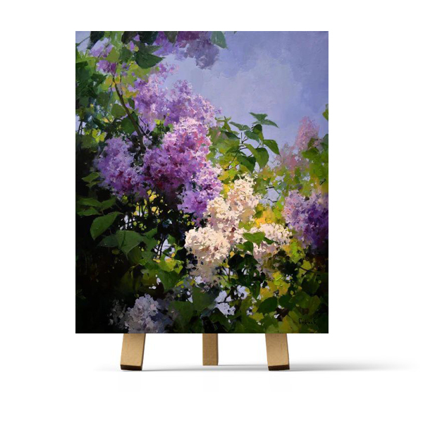 краски: белила, голубой ФЦ, красный, темный желтый, средний лимонный, зеленая травяная, умбра натуральная Ленинградская, ультрамарин, индиго, краплак красный, сиена натуральная, фиолетовый