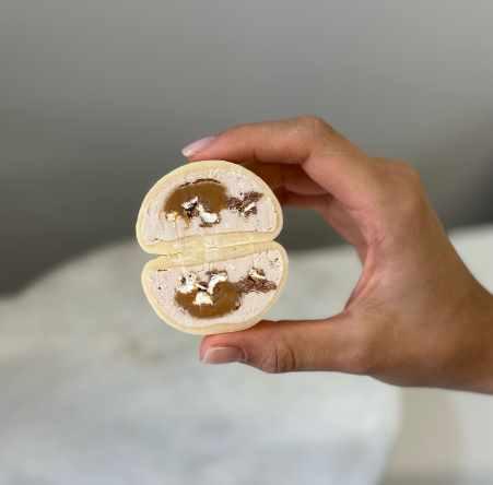 — две хрустящих начинки (карамельная и шоколадная)