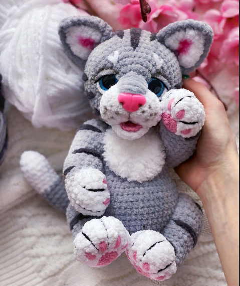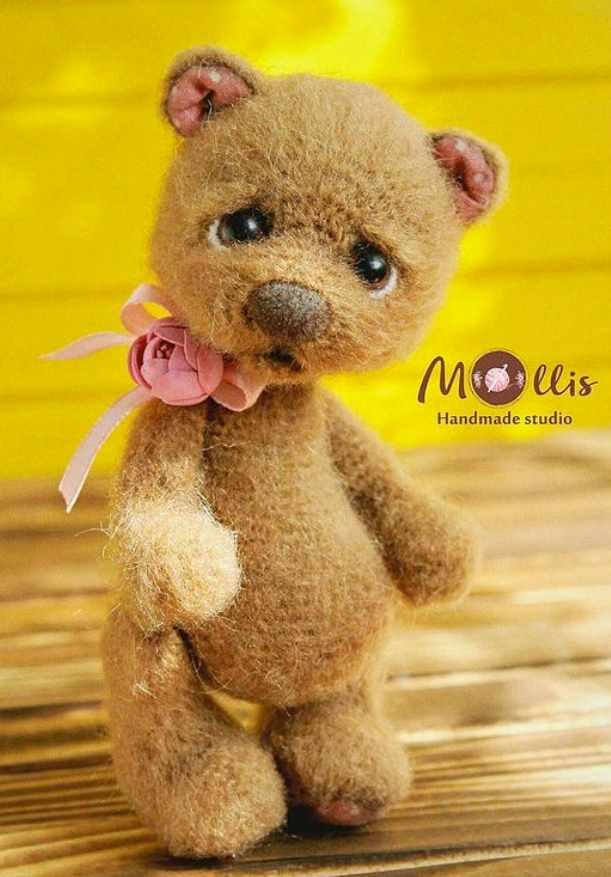 У данного героя внутри вставлен проволочный каркас, с помощью которого можно зафиксировать любое положение пальчиков на лапах. Белая сова вяжется полностью только крючком.