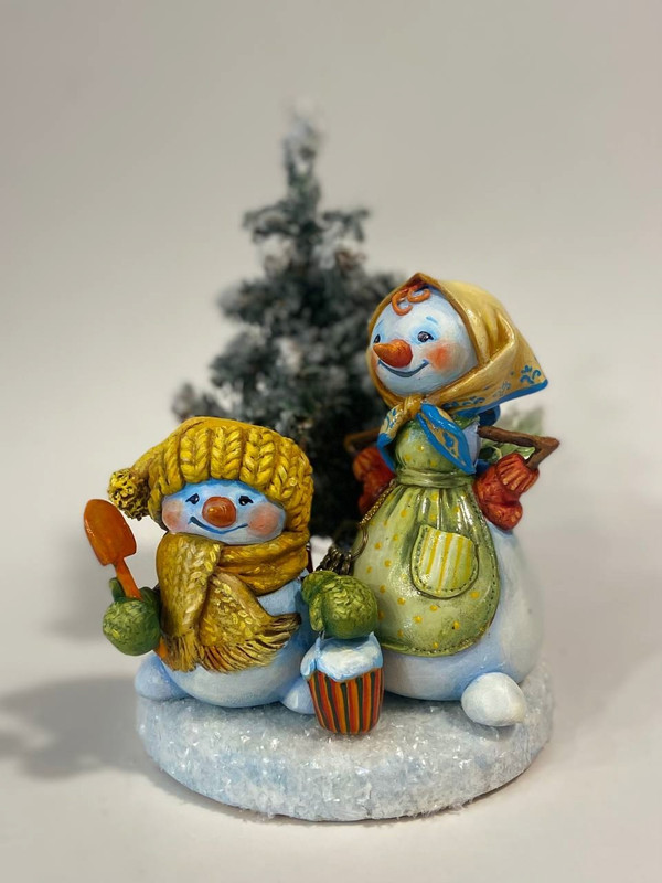 В понедельник 16 декабря 19.00 ( по Москве) мы начинаем лепить композицию с двумя снеговиками.