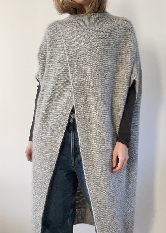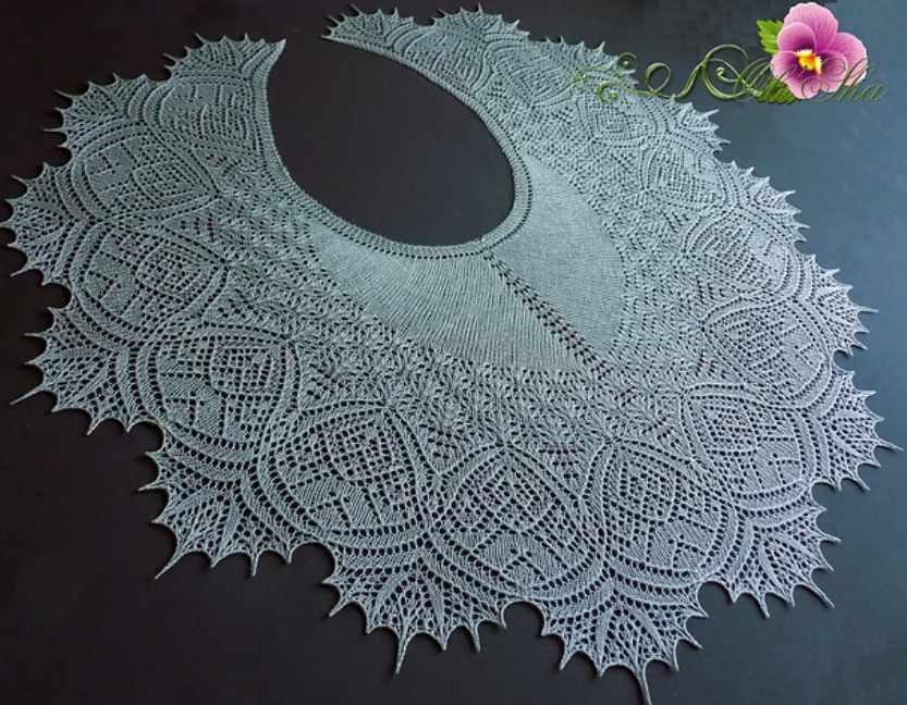 Кардиган со спущенным плечом вяжется спицами сверх вниз без швов.